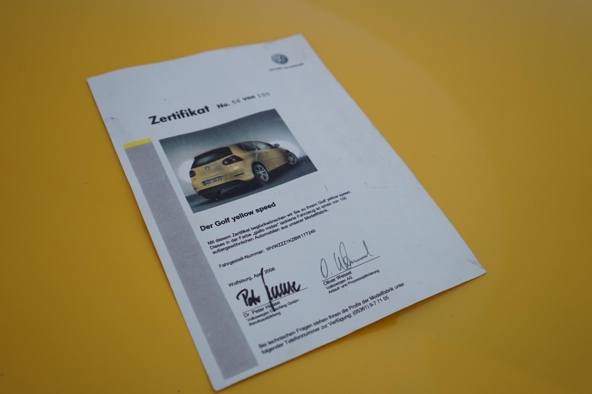 Volkswagen Golf Mk5 Yellow Speed on erittäin harvinainen erikoismalli, jota valmistettiin vain 100 kappaletta. Tämä tekee autosta poikkeuksellisen ja keräilyarvoa omaavan kokonaisuuden. Erottuu massasta sekä ulkonäöllään että ainutlaatuisuudellaan.